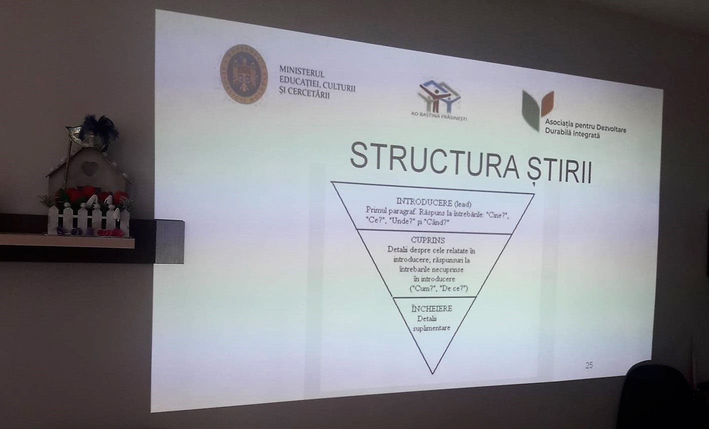 Activitățile sunt parte a Proiectulului „Scriem cu responsabilitate, acționăm pentru comunitate”. Obiectul proiectului e dezvoltarea jurnalismului comunitar și crearea unei voci media prin sporirea nivelului de educație media la cel puțin 160 de tineri din 16 localități rurale din raioanele Căușeni, Ștefan-Vodă, Ungheni și Călărași.