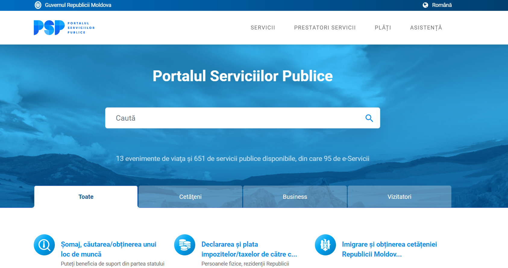 Versiunea nouă a portalului oferă cetățenilor comoditatea de a accesa circa 250 de servicii digitale într-un singur ghișeu electronic servicii.gov.md și ghidează utilizatorul în găsirea informației structurate pe evenimente de viață, cu o interfață prietenoasă și cu motor de căutare avansat.