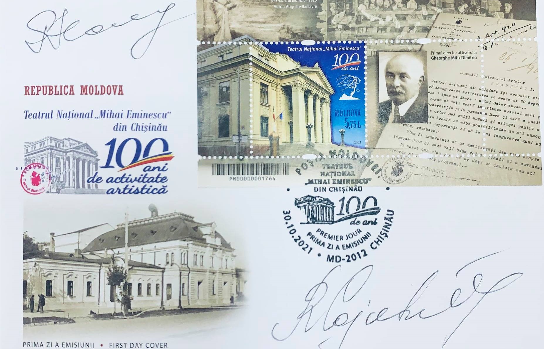 ÎS „Poșta Moldovei” a pusă în circulație seria de mărci poștale „100 de ani de la inaugurarea Teatrului Național „Mihai Eminescu”. Seria include o coliță cu o marcă poștală, dar și un plic „Prima zi a emisiunii”.