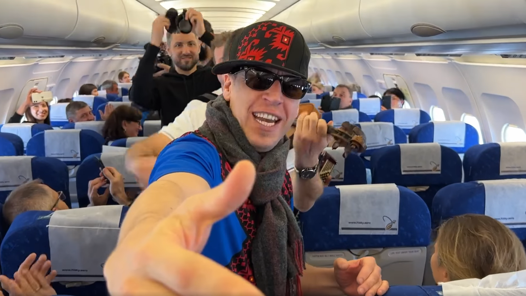 Aflați la bordul avionului pe cursa Chișinău-Bergamo, pasagerii au avut parte de un frumos spectacol improvizat de „Zdubi” și frații Advahov. Aceștia i-au delectat pe călători cu săltăreața lor piesă și nu au ratat să filmeze acest moment plăcut. Pasagerii i-au aplaudat pe băieții de la „Zdob și Zdub” și le-au urat succese la Eurovision.