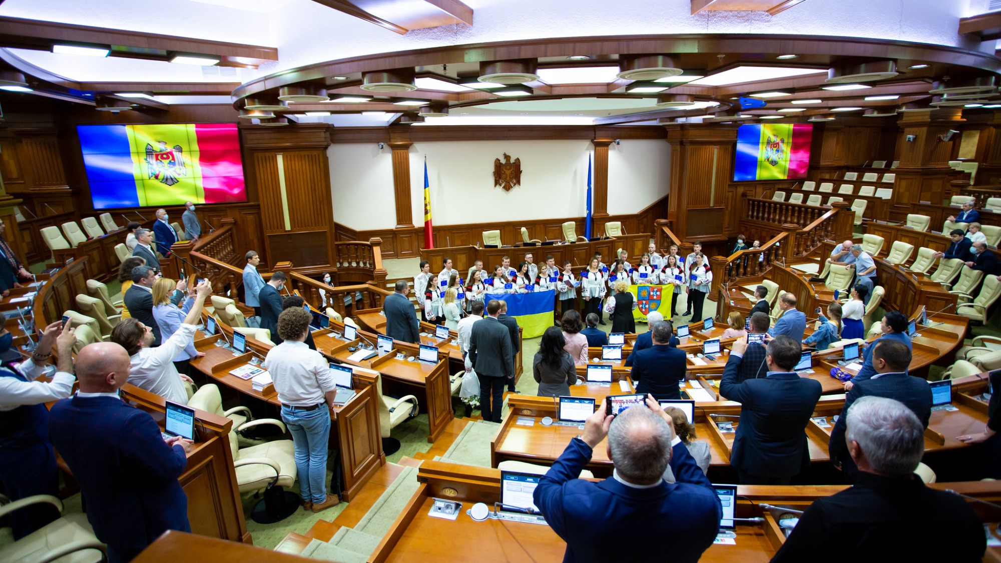 Invitat special al ceremoniei de încheiere a sesiunii de primăvară a Parlamentului a fost Corul Filarmonicii Regionale din Vinița, Ucraina. Corul a interpretat imnul Ucrainei, cântecul patriotic „Cervona kalina” și imnul Uniunii Europene.
