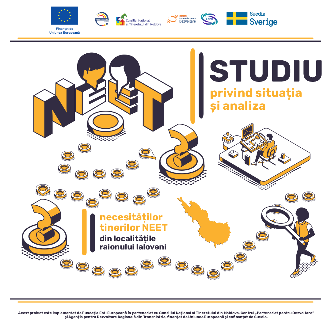 Proiectul „Oportunități mai bune pentru tinerii și tinerele care nu beneficiază de educație, formare și locuri de muncă (Inițiativa de Incluziune a Tinerilor și Tinerelor NEET)” este finanțat de Uniunea Europeană și Suedia. Proiectul este implementat de Fundația Est-Europeană în parteneriat cu Consiliul Național al Tineretului din Moldova, Centrul Parteneriat pentru Dezvoltare și Agenția pentru Dezvoltare Regională din Transnistria. Opiniile exprimate aparțin autorilor și nu reflectă neapărat punctul de vedere al Fundației Est-Europene, al Consiliului Național al Tineretului din Moldova, Centrului Parteneriat pentru Dezvoltare și al Agenției pentru Dezvoltare Regională din Transnistria, ale Uniunii Europene și/sau al Suediei.