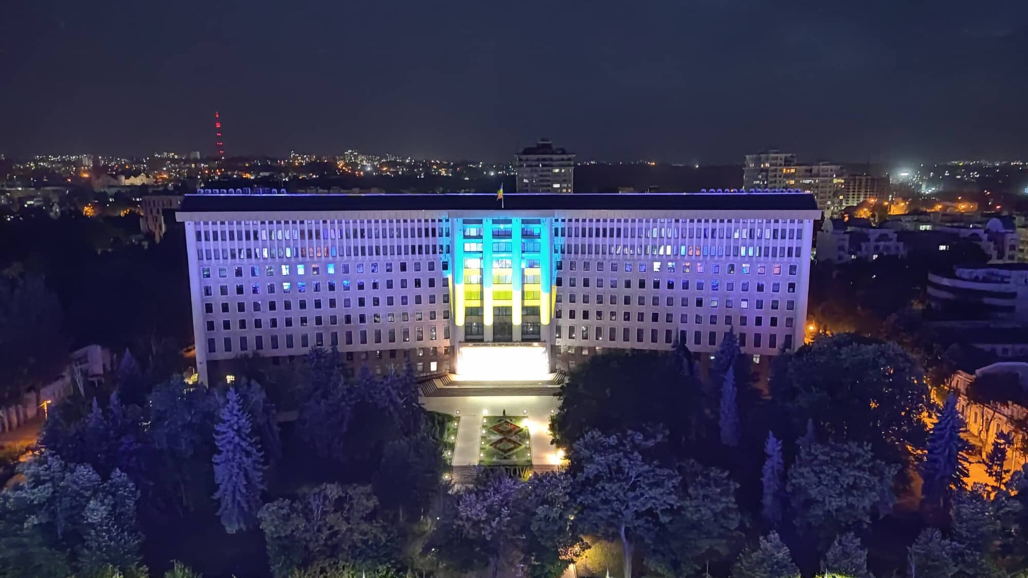 De Ziua Independenței Ucrainei, în această seară de 24 august, în semn de solidaritate, clădirea Parlamentului de la Chișinău este iluminată în culorile steagului Ucrainei.