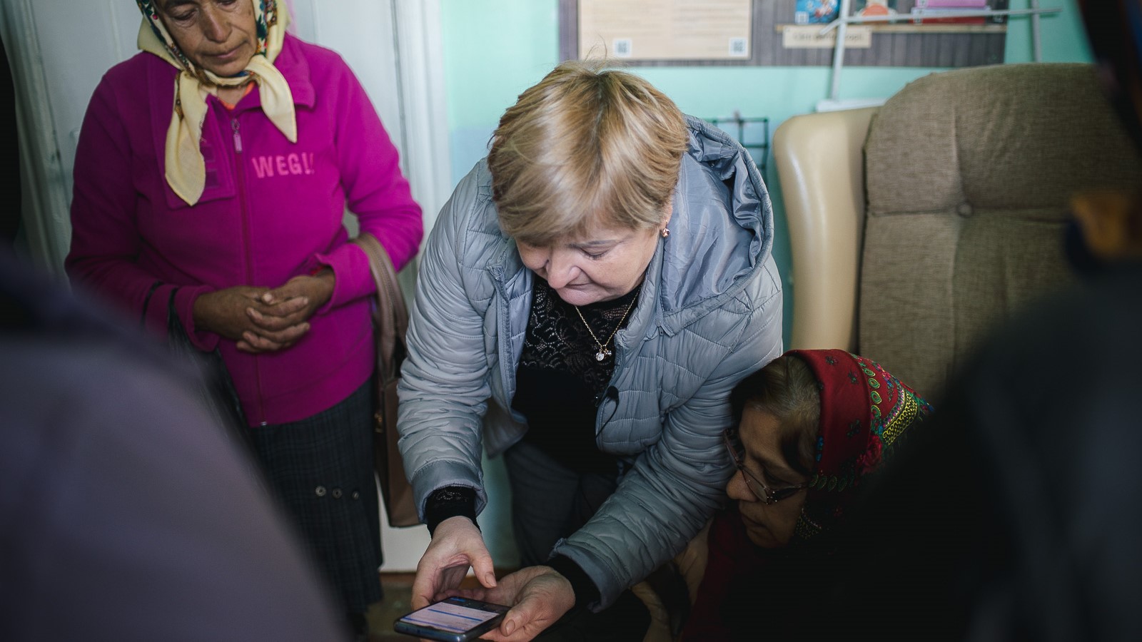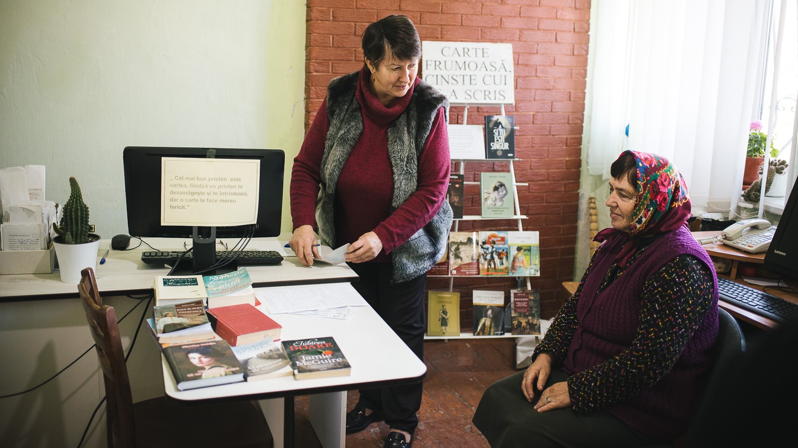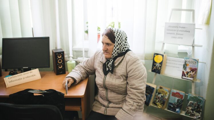 Cele două bibliotecare, Raisa și Aurelia Bordei, îi ghidează pe oameni cum să acceseze platforma națională compensatii.gov.md de la telefoanele lor mobile sau cum să depună o cerere de la calculatoarele din instituție. Unii prind repede firul și se duc acasă și-și ajută rudele, spune Raisa Bordei, alții necesită mai mult ajutor.