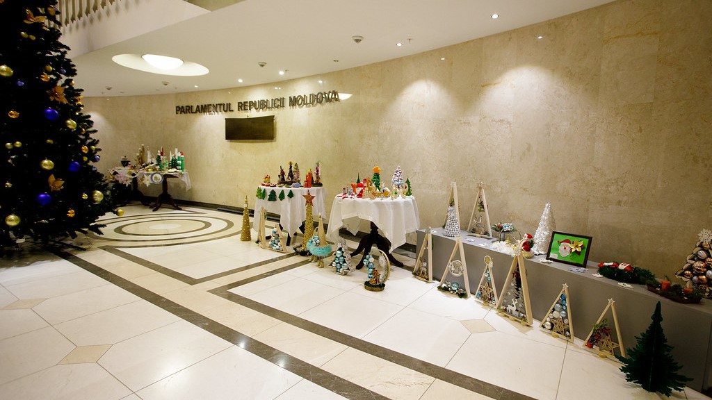 В здании парламента открыта выставка, посвященная зимним праздникам. Работы выполнены учащимися учебных заведений и детьми – воспитанниками Ресурсных центров инклюзивного образования района Стрэшень.