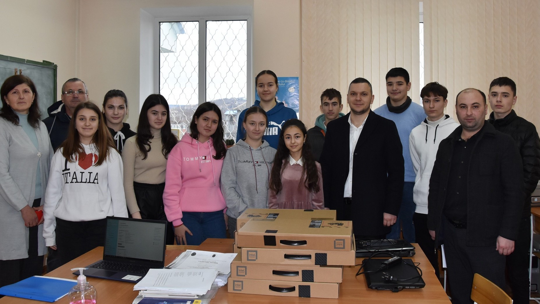 Партию ноутбуков передали школьным учреждениям председатель района Василе Секриеру и вице-председатель Игорь Стоян.