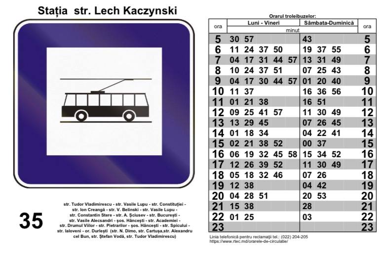 Este vorba despre itinerarul rutei de troleibuz nr. 35 de așteptare a transportului public „str. Lech Kaczynski” din str. Drumul Viilor 36/1.