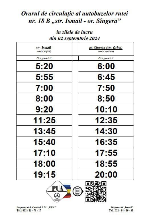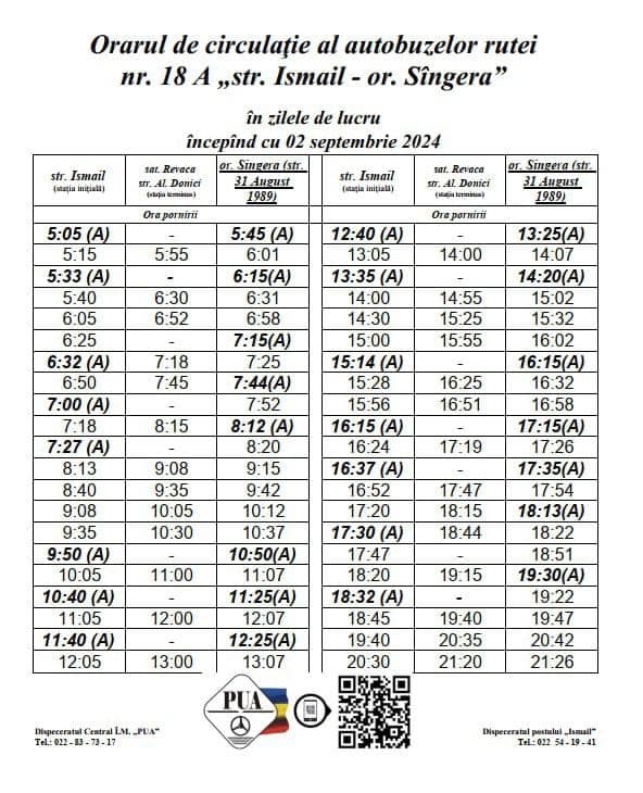 Consultați mai jos orarul circulației autobuzelor de pe cele două rute nr. 18: