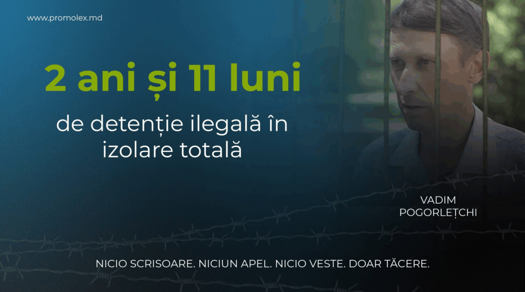 Asociația Promo-LEX a lansat campania „Libertate pentru Vadim Pogorlețchi – 2 ani și 11 luni de detenție ilegală în izolare totală”. Organizația solicită eliberarea imediată și necondiționată a activistului civic din Tiraspol, aflat de peste 1.000 de zile în detenție în regiunea transnistreană.